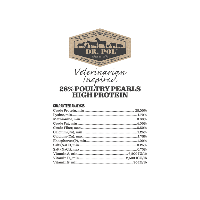 • Dr. Pol High Protein 28% Poultry Pearls are a sole ration and complete feed for your chicks